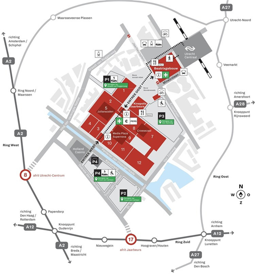 乌得勒支广东会中心位于荷兰乌得勒支市内,展馆内部都是免费无限使用无线网络。场地包含十一个大厅,适用于各种各样的活动。此外,它有5个会议室(150人以上)和媒体广场。Jaarbeurs是荷兰乌得勒支的一个展览和会议中心。着名活动包括前Space '86,Hobby Computer Club Days以及Mega Record&CD Fair。该场地也是ASOT音乐节和Thunderdome等音乐节的常规基地。